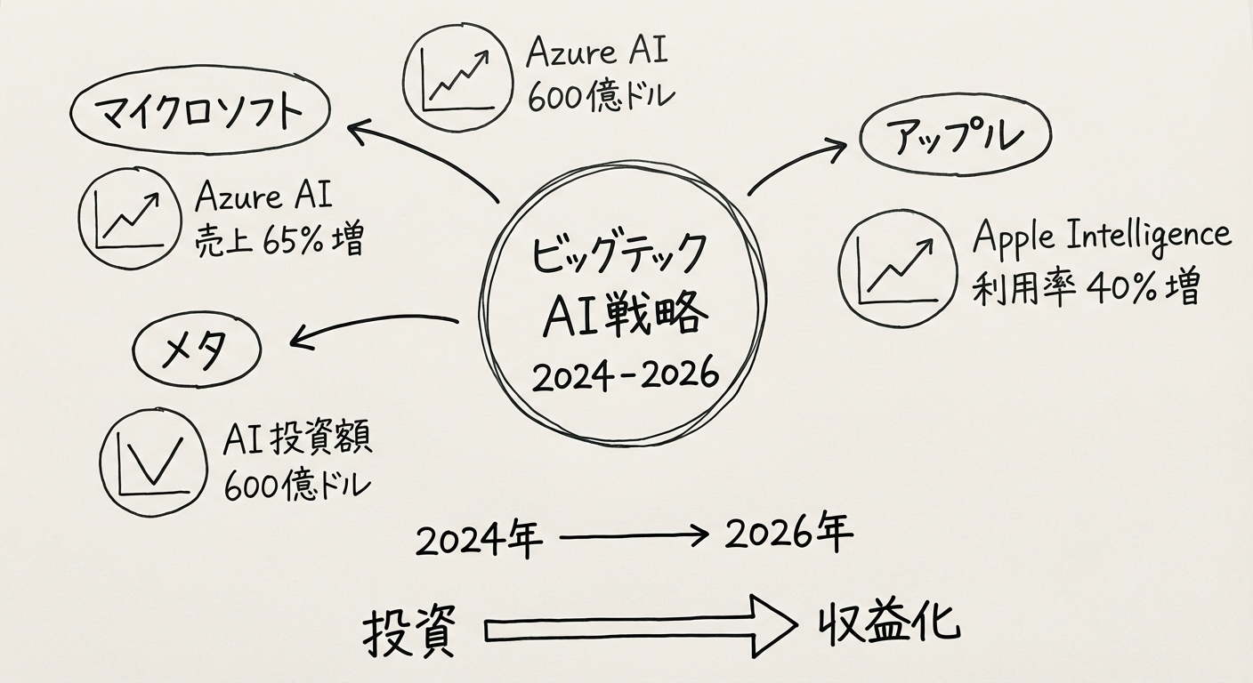 Big Techの決算発表は、AI投資が研究開発段階から収益化段階へと移行しつつあることを示しています。MicrosoftのAzure AI、MetaのLlama、AppleのApple Intelligenceは、いずれも実際のユーザーや企業に価値を提供し始めています。