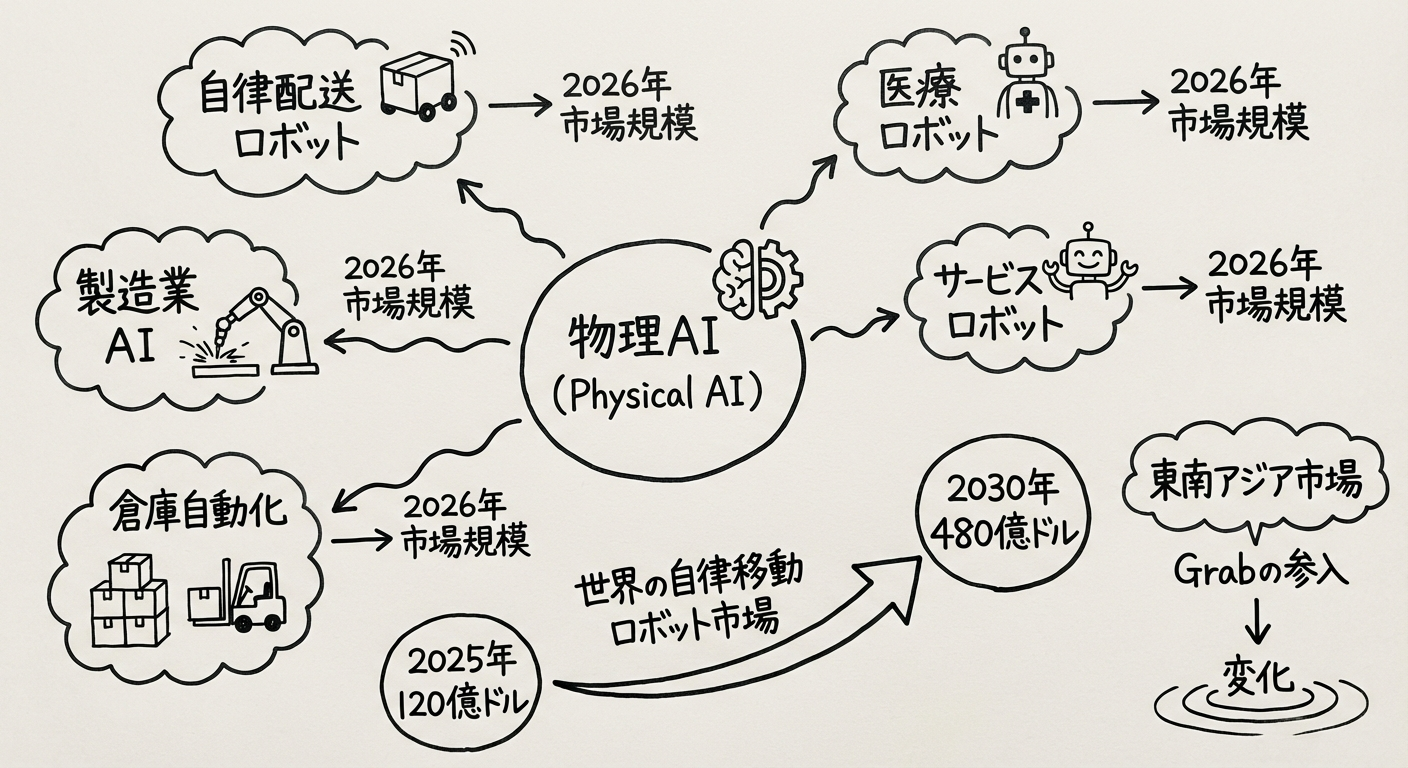 GrabのInfermove買収は、AIがデジタル空間から物理世界へと拡張する「物理AI」のトレンドを象徴しています。自律移動ロボット、自動運転車、産業用ロボットなど、物理AIは今後数年間で急成長する市場です。
