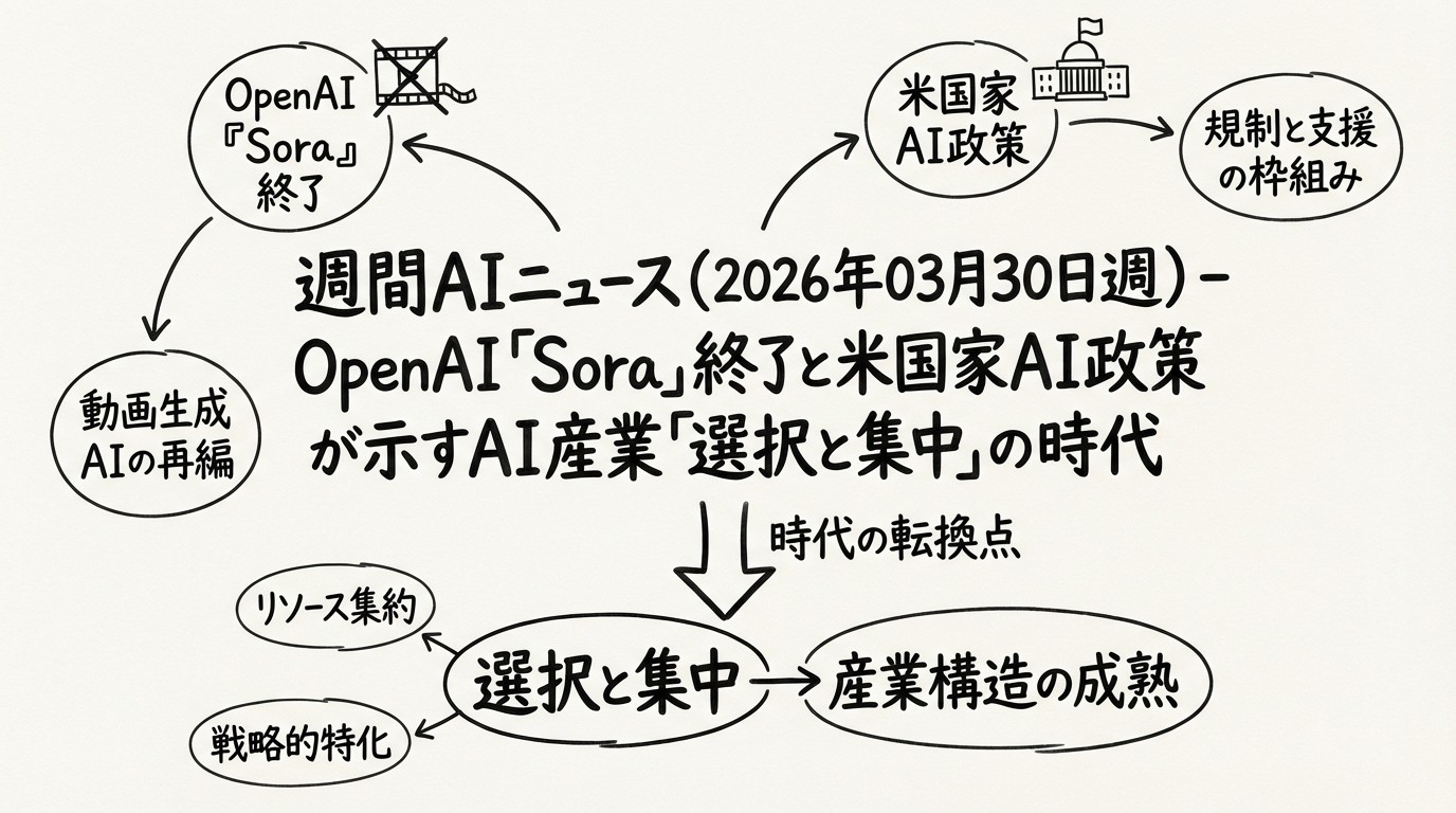 週間AIニュース(2026年03月30日週)- OpenAI「Sora」終了と米国家AI政策が示すAI産業「選択と集中」の時代